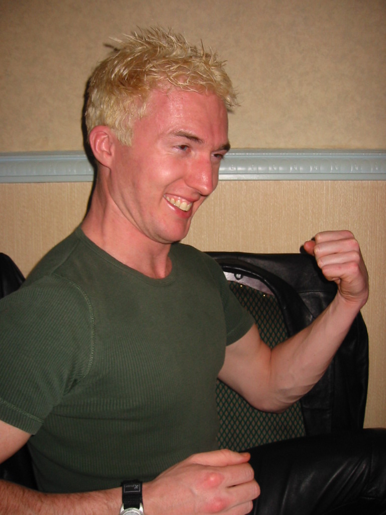 Jon demonstrating his buttock-clenching exercises.