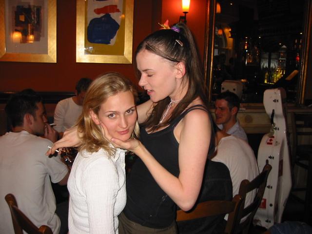 Llinos and Una pretending to be lesbians.