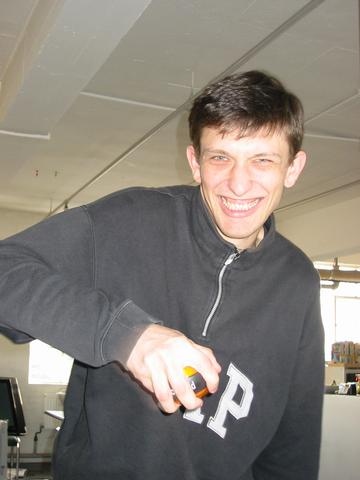 Mark pulling a silly face when doing Jasper's PowerBall